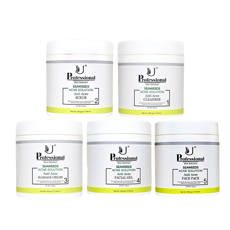 This professional-grade facial kit includes Cleanser, Scrub, Massage Cream, Facial Gel, and Face Pack. Designed for acne-prone skin, it works in synergy to cleanse, exfoliate, soothe, hydrate, and purify the skin for a clearer and healthier appearance.